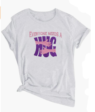 Everybody need a HUG (Black or White Crew neck T-Shirt, Embroidery), (opt for Fringes)